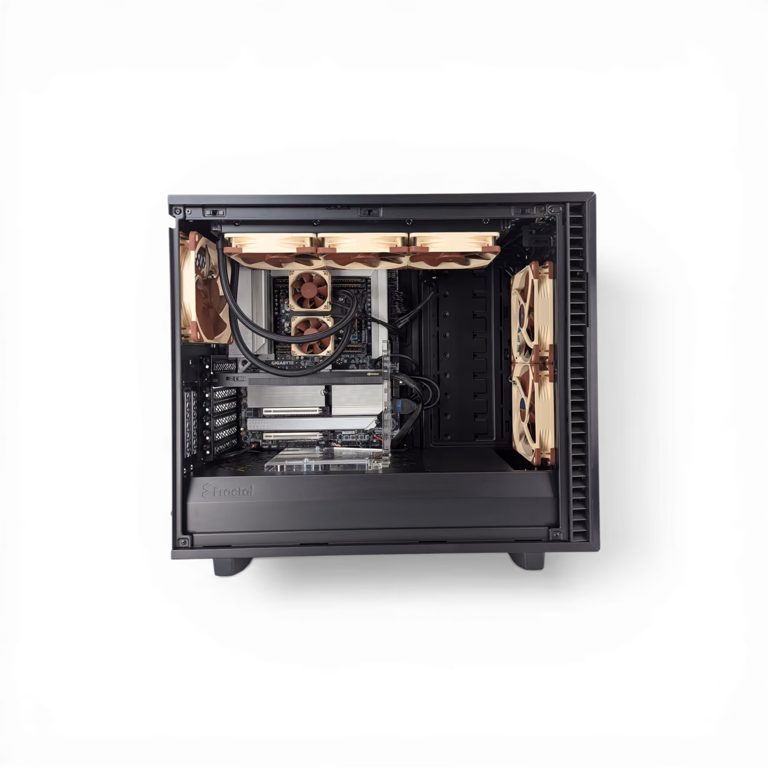 The HEDT crossover desktop, bridging consumer and workstation-class performance. Built on AMD's TRX50 platform with the Threadripper 9970X 32-core/64-thread processor, 128GB DDR5 registered ECC memory (4×32GB), 8TB NVMe Gen5 storage (2× 4TB M.2, peak 14,100 MB/s), and RTX 5090 32GB GDDR7 graphics. Features 10G + 2.5G networking with WiFi 7 and optional Intel E810 25G/100G SFP28 expansion via PCIe. Onboard Realtek ALC4080 HD Audio. GIGABYTE TRX50 AERO D motherboard in a CEB full tower chassis. Designed for multi-threaded creative production, simulation, AI training, and workflows that demand more cores and memory bandwidth than consumer Ryzen.